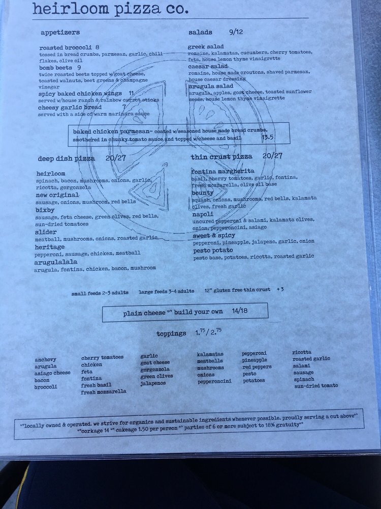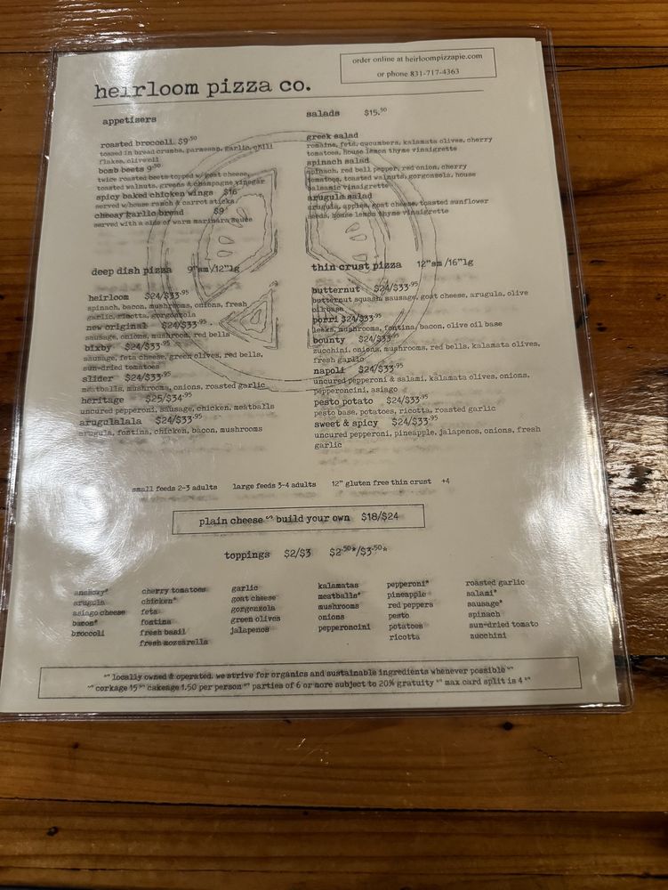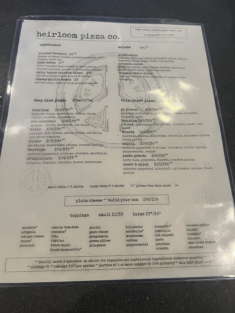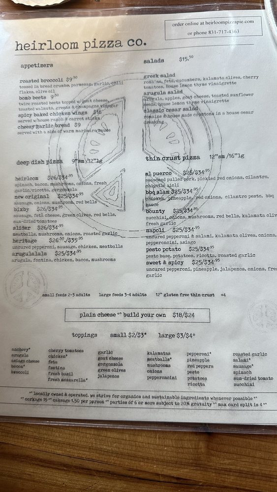 Heirloom Pizza Co. MONTEREY Menu