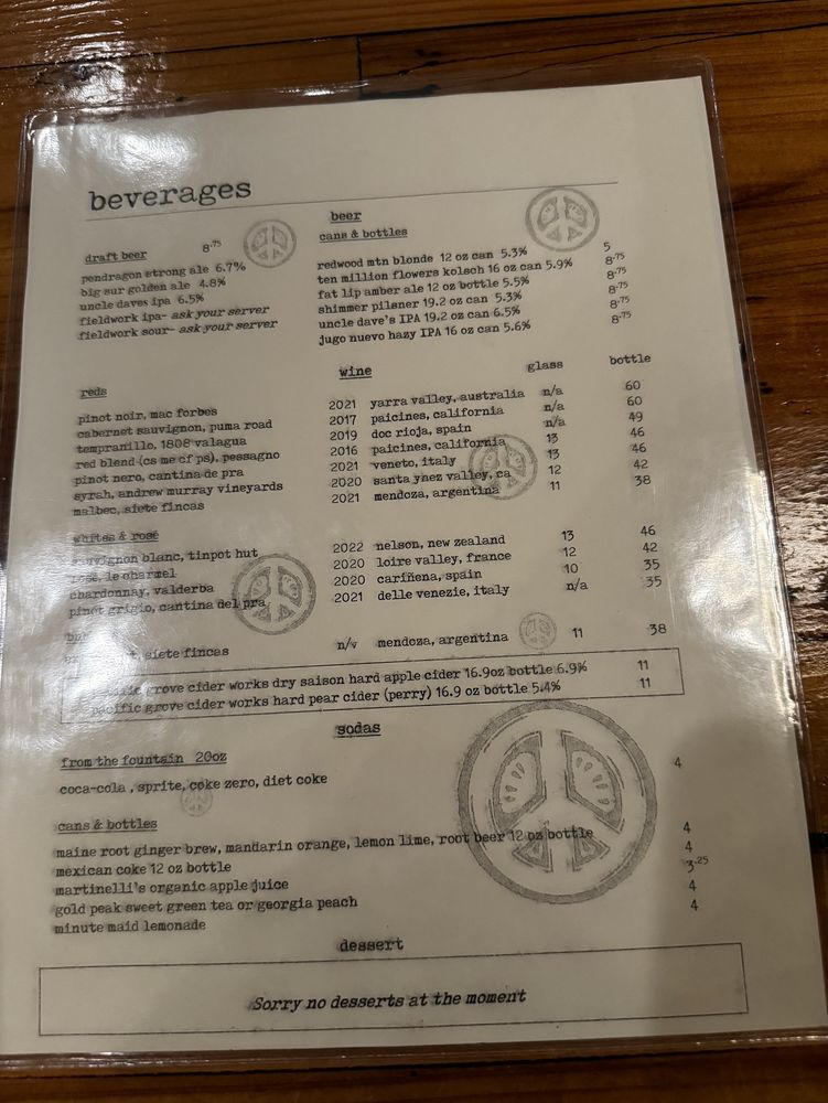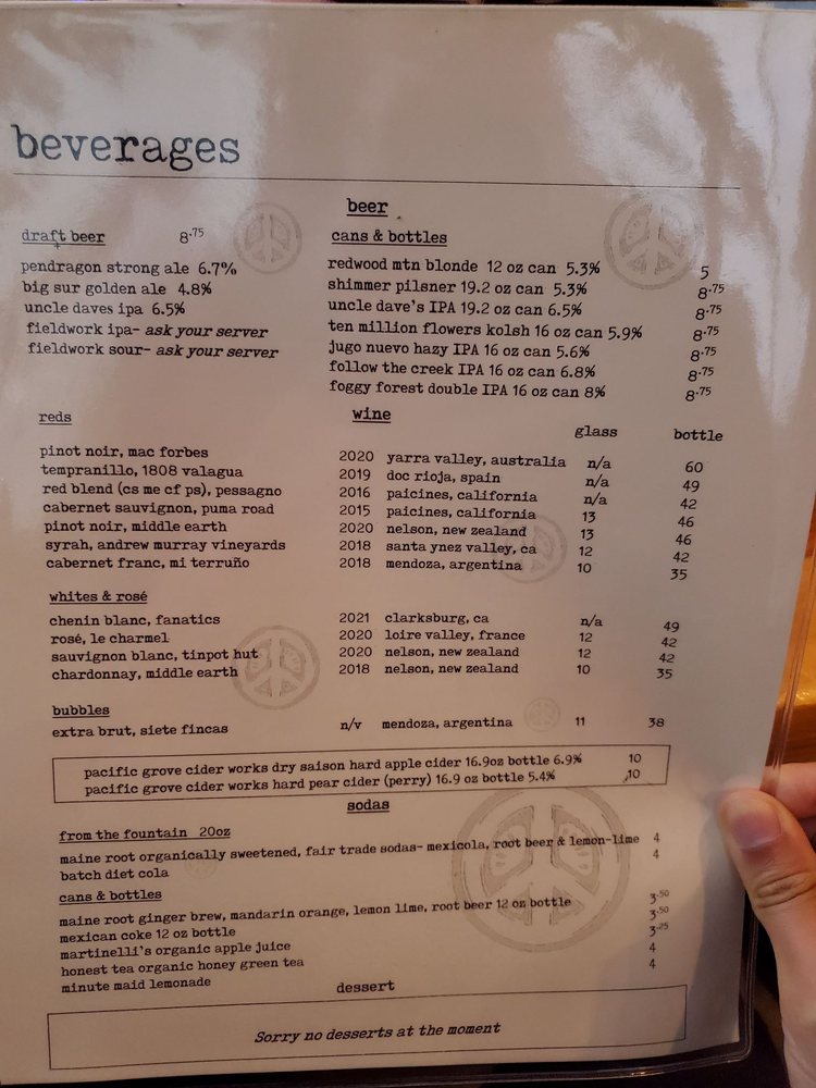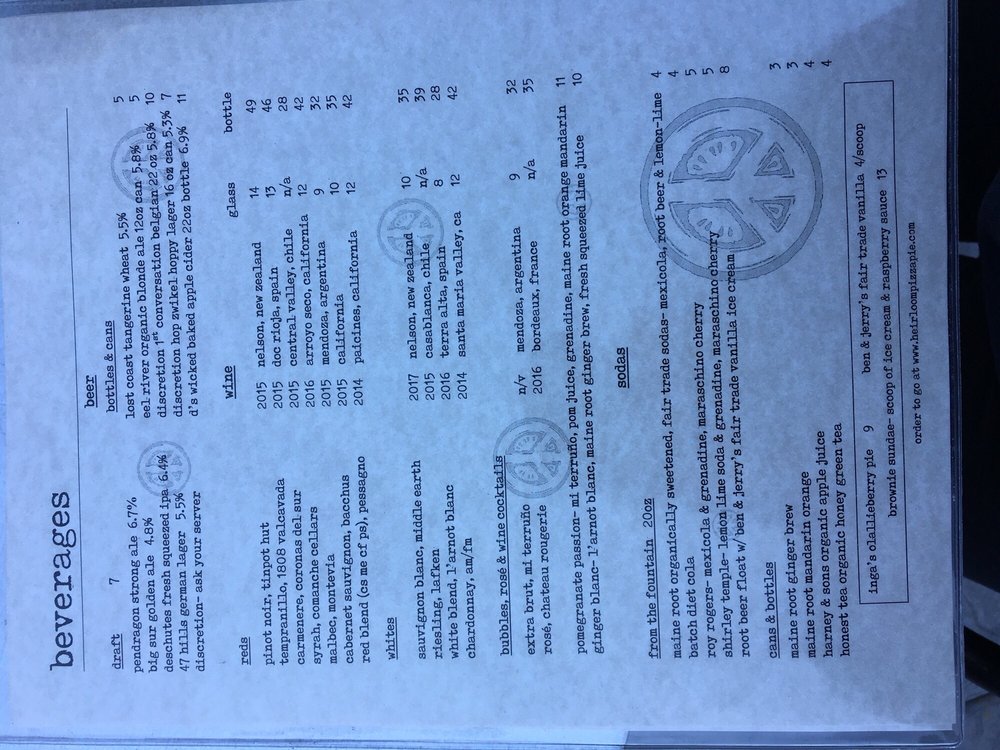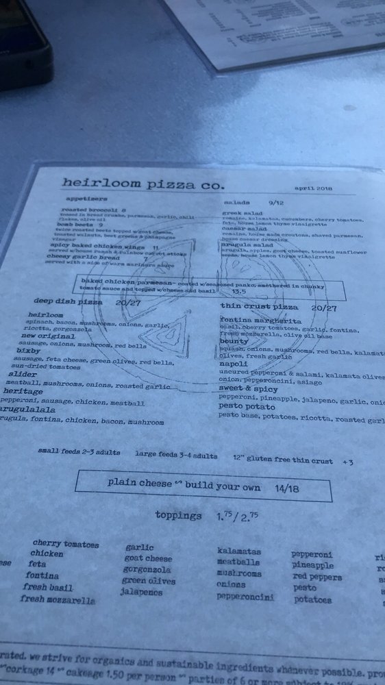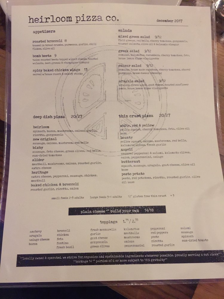 Heirloom Pizza Co. MONTEREY Menu
